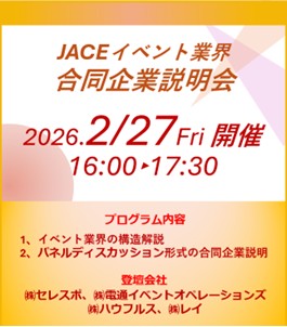一般社団法人日本イベント産業振興協会(JACE)は、平成26年より、国内外で行われるイベントを対象に、そのイベントが開催されることによって波及する経済効果、地域への集客及び交流人口の増加、海外に対して我が国の魅力を発信する効果、また、今後開催されるイベントに影響する技術や創造性を顕彰する「JACEイベントアワード」を実施しています。